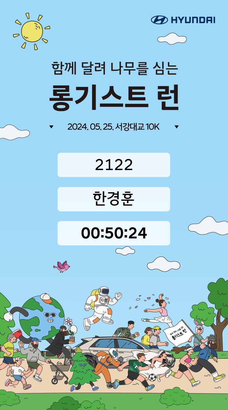 - 결과는 동아 마라톤 보다 8초 늦은 50분 24초. 목표 기록은 달성하지 못했지만, 개인적으로 매우 재밌었던 대회였다.(기록 단축은 다음에 다시 하면 되지ㅎ)